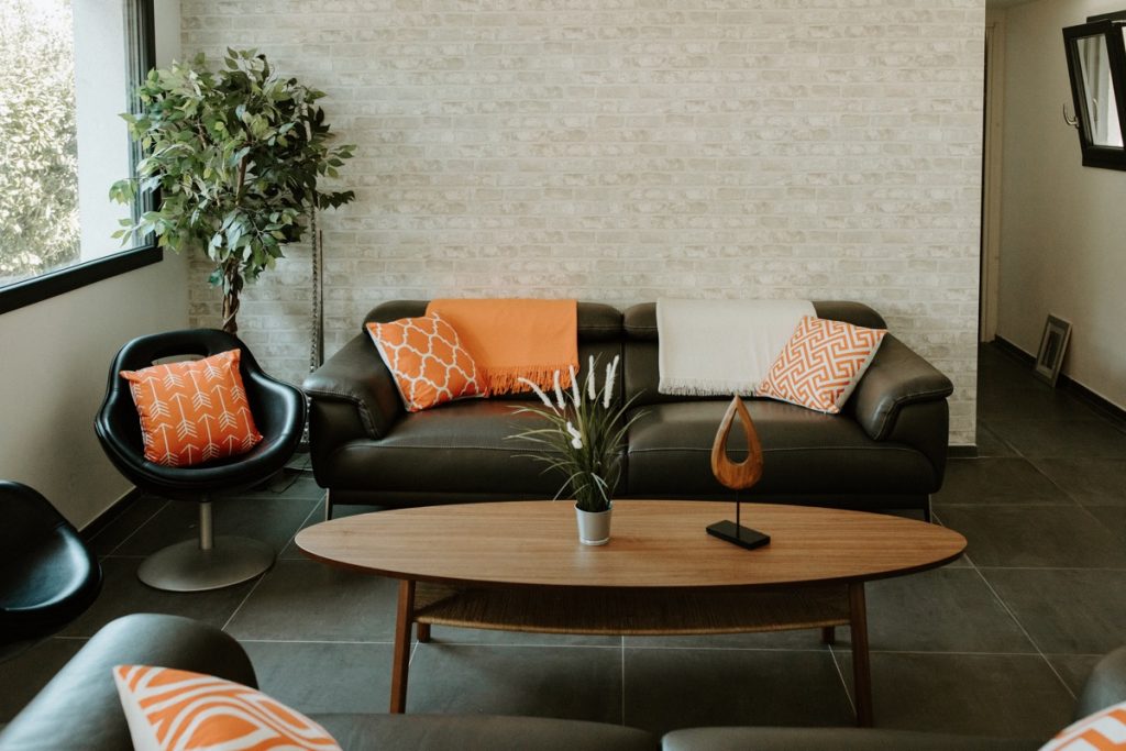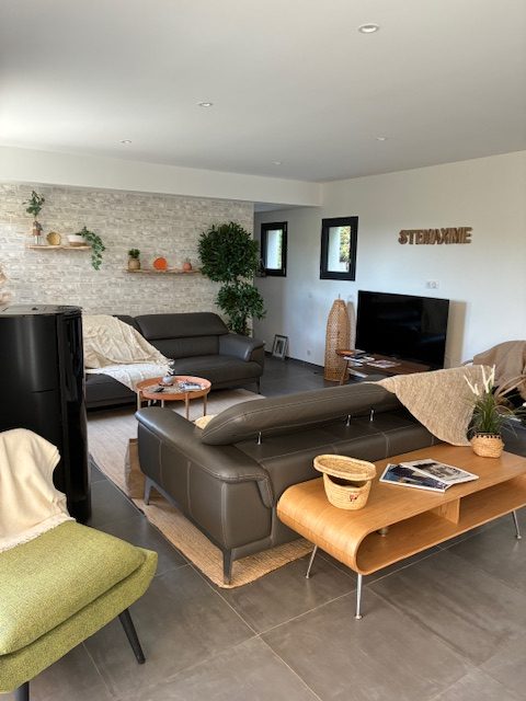 2 canapés en cuir et des fauteuils vous attendent pour regarder la télévision écran plat (55’’- 140 cm), toutes les chaines TNT sont à votre disposition, le wifi vous permettra d’accéder à vos abonnements personnels. Vous pouvez apporter Canal etc… Tout est prévu.