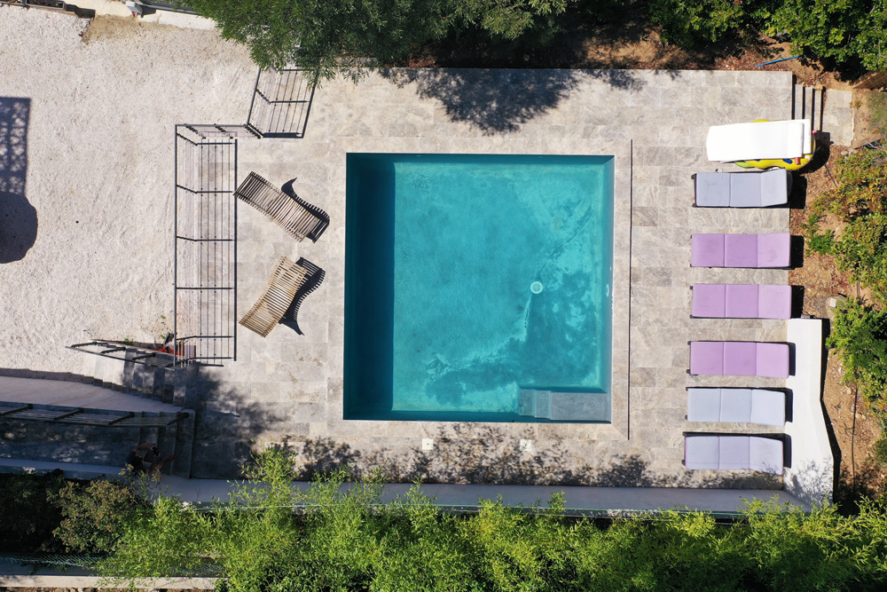 Et bien sûr, la piscine carrée, chauffée, privée de 6×6, entourée entièrement d’une plage avec 8 bains de soleil. Vous pourrez faire la sieste sur 2 matelas américains directement dans la piscine. Vous avez des enfants en bas âge, elle est sécurisée par une alarme et des gardes corps. Vous pourrez facilement leurs interdire l’accès. Sa gestion est prise en charge par nos soins sauf le petit entretien journalier (5 minutes).