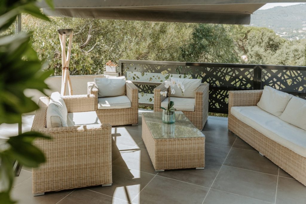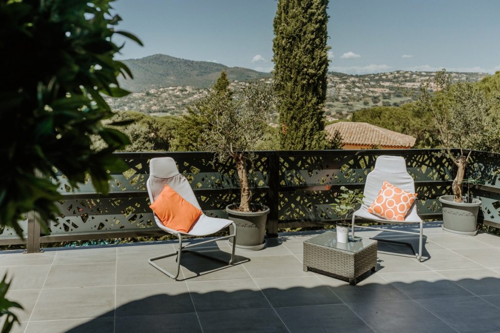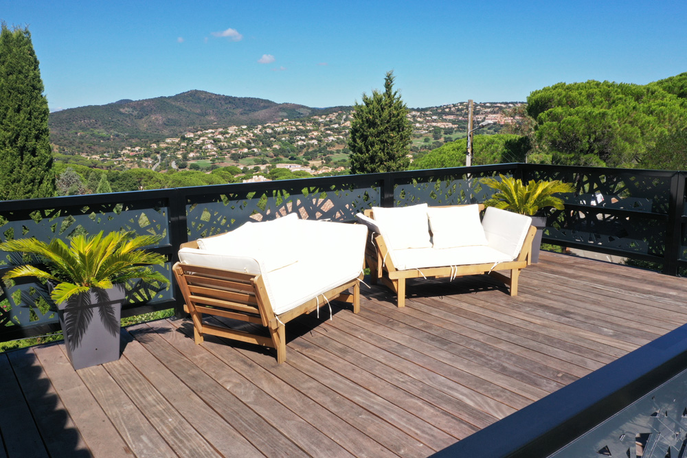 A la rubrique farnienté, une terrasse solarium avec une vue superbe sur le massif des maures vous tend les bras. Un canapé vous permettra de vous détendre encore et encore.